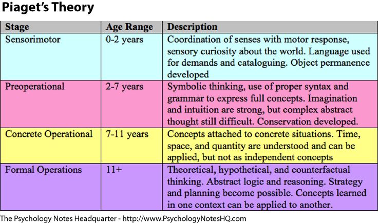 尤其是让·皮亚杰, 他提出了儿童认知发展四阶段: