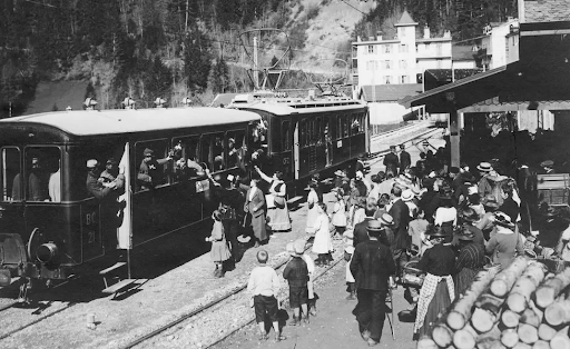 第一辆载满伤病员的火车驶进小山村 Chateau d’Oex