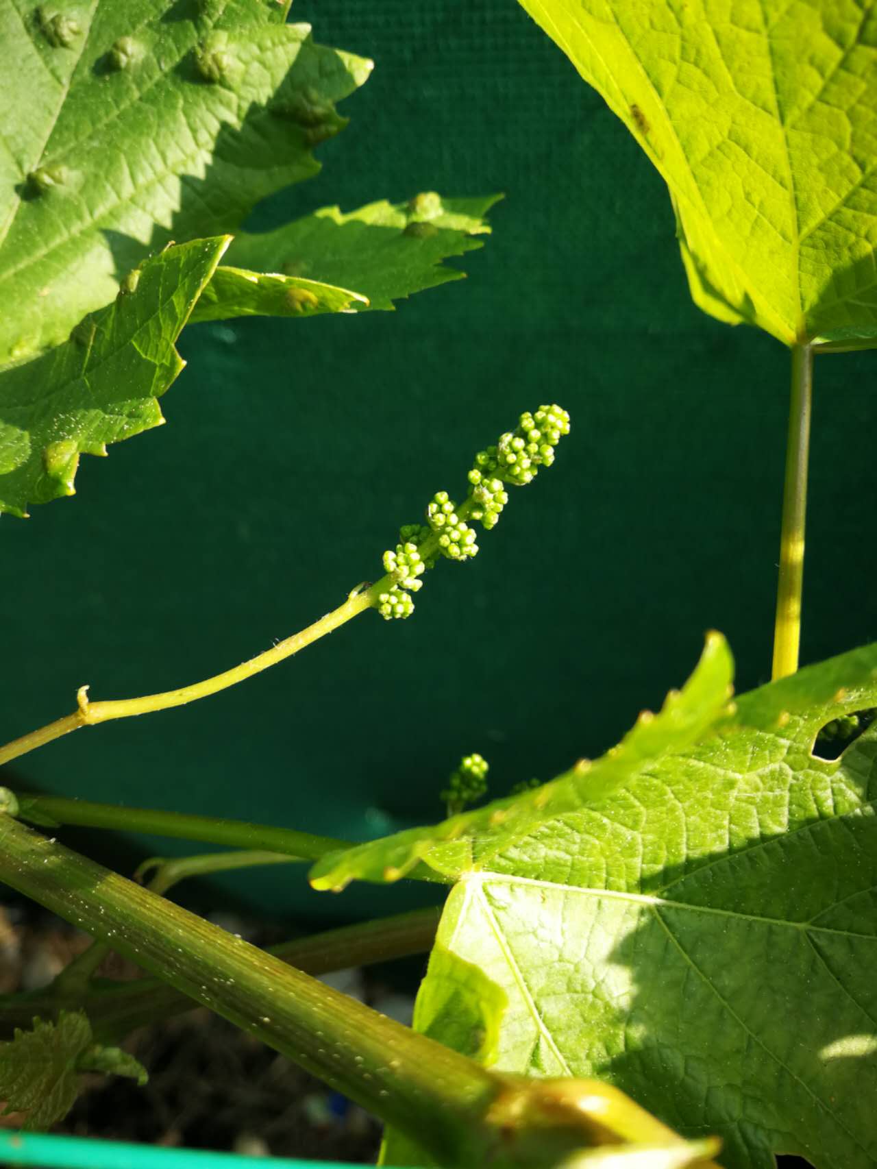 我家的莎塞拉斯白葡萄(Chasselas blanc)开始结果啦!