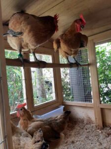 鸡窝里有鸡可栖息的竹竿