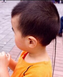 据说男小人头上留根“龙尾”百病不侵,长命百岁。