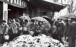 头班电车公共汽车一辆辆鱼贯驶出车场,卸完蔬菜的郊区菜农踏着大板车和重型拉货脚踏车出城了,菜场里喧闹声起人头攒动,戴着袖套的营业员拉亮摊位灯,照亮了长蛇队里睡意朦胧的男女老少;不远处,饮食店豆浆桶热气袅袅,油锅里油条翻滚,烤炉里大饼飘香……。