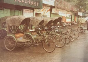 三轮车,座位下面放着一块厚毯,天冷辰光给客人盖脚馒头。