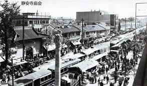 从铜仁路到华山路的庙会地段商贾云集,游人如织,街道两边摆满了一个个售货摊:有卖床柜、桌椅、箱子、棕绷、藤綳的家具摊,有卖浴盆、脚盆、马桶、小板凳、刀砧板、木拖板(木屐)、汰衣裳搓板的木器摊,有卖淘箩、藤筐、竹榻、竹帘、掏耳勺、马桶刷子、挠痒痒的 “老头乐”等的竹器摊,有卖草帽、草蓆、枕蓆、芭蕉扇、食品罩、苍蝇拍的杂货摊,有卖床罩、床单、被单、枕套、靠垫、枕芯、棉花胎等的床上用品专摊,有卖童帽,便帽,鸭舌帽、罗宋帽、风雪帽、布鞋、皮鞋、拖鞋、鞋垫、鞋拔、 鞋刷、鞋油的鞋帽摊,有卖菜刀、刨刀、剪刀、水果刀,剃头刀、扦脚刀的刀具摊、有卖蟑螂药老鼠药的小摊头,还有堆满了一荮荮碗盘碟勺的陶瓷器皿摊等。人头簇拥香气缭绕的是各色食品摊,卖腊肉、腊肠、腊鸭、板鸭、火腿、扁尖,虾酱、开洋、苔菜,海蜒、淡菜、紫菜、咸鲮鱼、黄鱼鲞、鸭胗肝、黄泥螺、霉干菜、莲心、红枣、黑枣、芡实、薏米、香菇、银耳、黑木耳、金针菜、百合干、枸杞子等的南北货摊;卖糖糕、蜂糕、松糕、绿豆糕、赤豆糕、定胜糕、条头糕、伦教糕、千层糕、水晶糕、萝卜丝糕、松花团、双酿团、糍毛团、桂花酒酿、酒酿圆子、豆沙水晶包,菜肉大包,叉烧大包、鲜肉大包、三丁大包、香菇蔬菜包、糯米肉丁烧卖等中式糕团饾饤的食品摊,还有卖蛋挞、椰丝撻、白脱酥、蝴蝶酥、咖喱卷、白脱咸条、咖喱鸡肉酥皮饺、奶油栗子蛋糕、椰丝奶油蛋糕、巧克力奶油蛋糕、柠檬奶酪蛋糕等西式糕点摊。各家百年老店也设立了专柜,在这里可以买到梅龙镇、绿杨村,老饭店、王家沙、乔家栅、新雅粤菜馆的特色菜肴点心,如:荷叶粉蒸肉、走油蹄膀、特色熏鱼、鲜肉响铃、蜜汁火腿、新雅虾仁、四喜烤麸、蟹粉狮子头、烟熏鲳鱼等等,应有尽有……。
