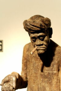 “兒子人好,听爷老头子呒么铜钿,呒么饭吃,每月拿了省下的零用钿去看伊,买点给伊吃吃,还留一笔铜钿给伊过日脚。哪恁晓得,兒子前脚出村,伊后脚就进酒店,大吃大喝,呒么几天,钞票统统用光!后来几天,伊就饿肚皮,左邻右舍见到,给伊一点点吃的,侬晓得,大家都不宽裕,啥人可以天天接济伊?!伊就迭恁要么喝酒喝到’开架橱门‘、吃肉吃到肚皮撑破,要么饿到金星乱冒,哪恁会得不生病?……听说伊后来瘦得脱形,胃痛得厉害,是活活痛死嗰,啊要作孽?