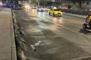 柏油马路晒烊脱了