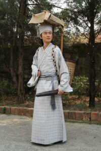 古装戏中读书人背着书篓去赶考